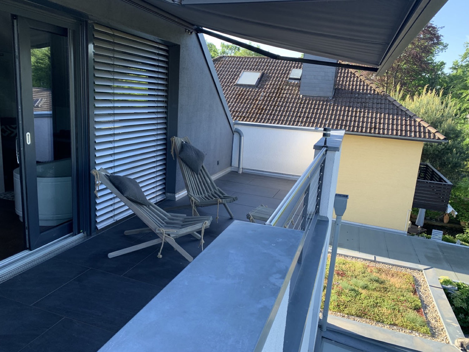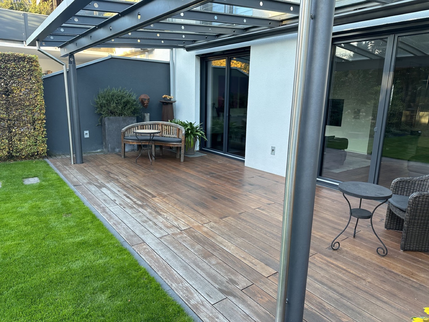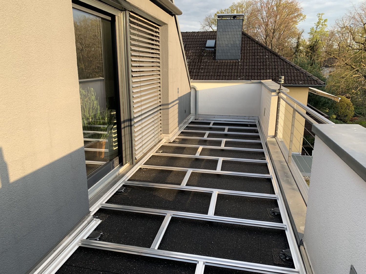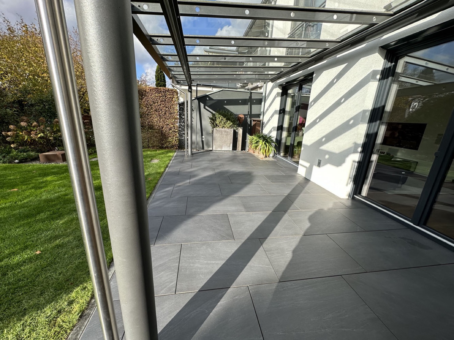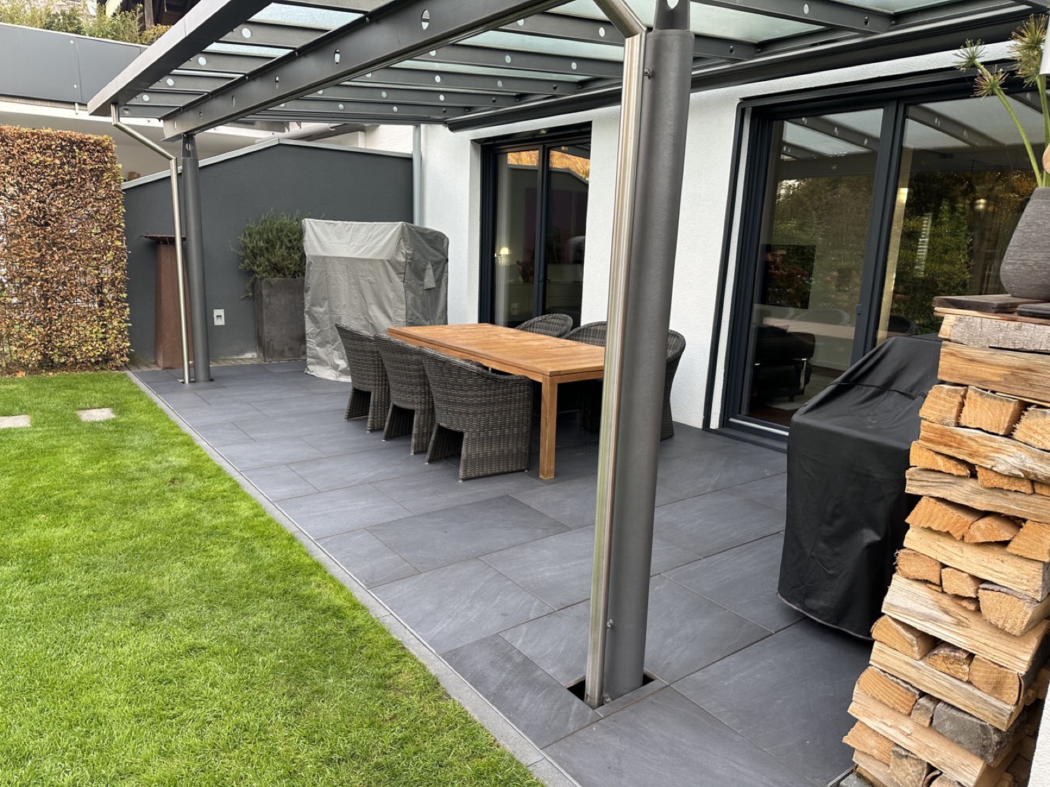 Am Haus haben wir in 2022 auch wieder etwas gemacht, nämlich das Holz auf der Terrasse und der Dachterrasse durch Platten ersetzt. Echte Gemeinschaftsarbeit!