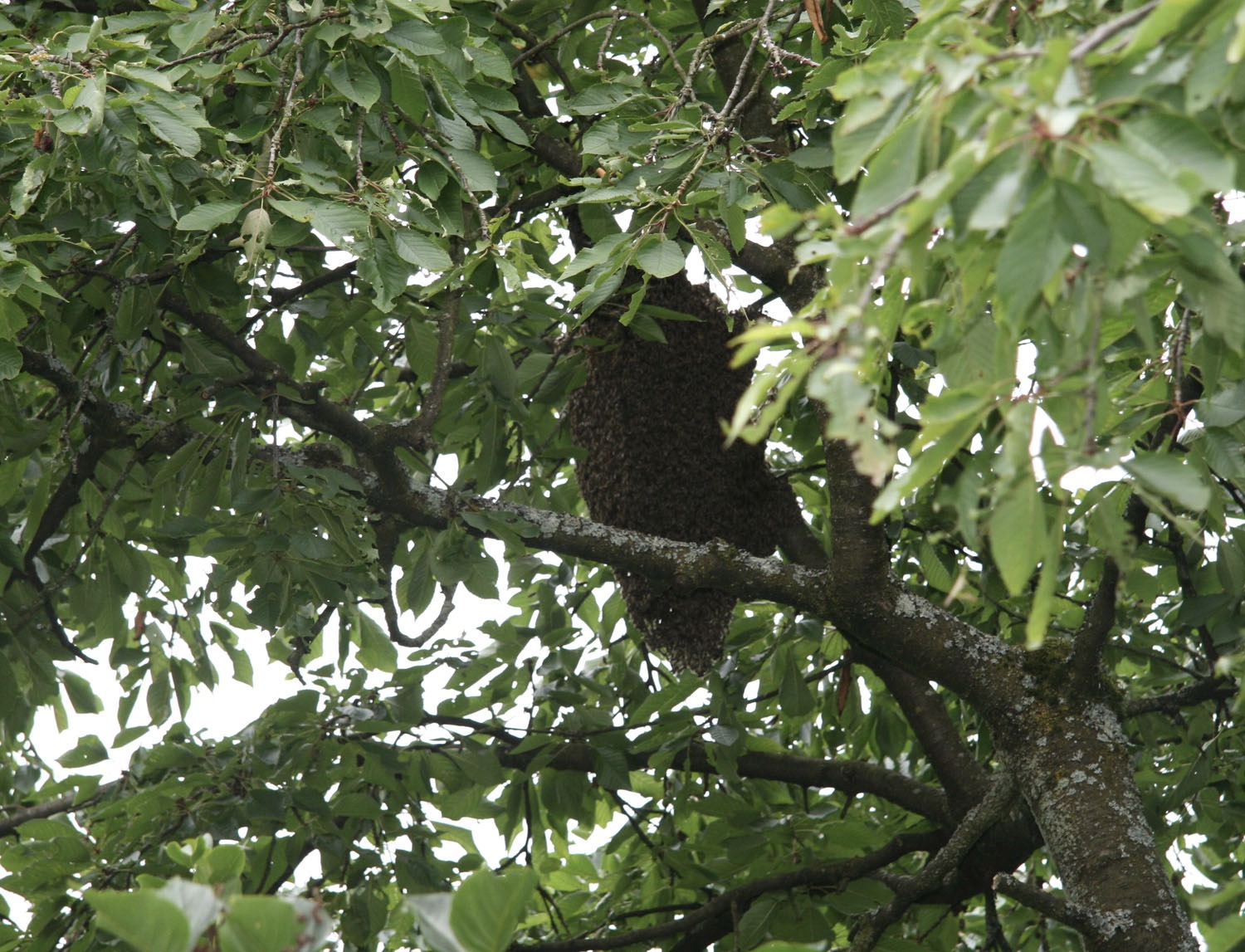 Wie sieht eigentlich ein Bienenschwarm aus? Zugegeben - das können wir nicht immer vorführen, aber zumindest mal ein Foto zeigen: